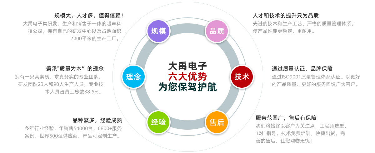 福州大禹電子科技有限公司成立于2008年自創(chuàng)辦以來,專注超聲產(chǎn)品的研發(fā)和產(chǎn)業(yè)化,始終堅持技術創(chuàng)新是企業(yè)發(fā)展動力的理念,運用最基礎的物理聲學原理,攻克了一系列卡脖子難題,成功打破了國外壟斷,把超聲技術運用到了工控、水利、市政、環(huán)保、醫(yī)療,海洋等各個領域。積累了多項發(fā)明專利和幾十項實用新型專利、軟件著作權(quán)、外觀專利;獲得了“科技創(chuàng)新小巨人”、“專精特新”、 “國家級高新技術企業(yè)”等榮譽,掌握了產(chǎn)品硬件、軟件、材料和工藝的核心技術,通過ISO9001體系認證和環(huán)境管理體系認證。主要產(chǎn)品有物位計、明渠/多普勒流量計、空氣/...